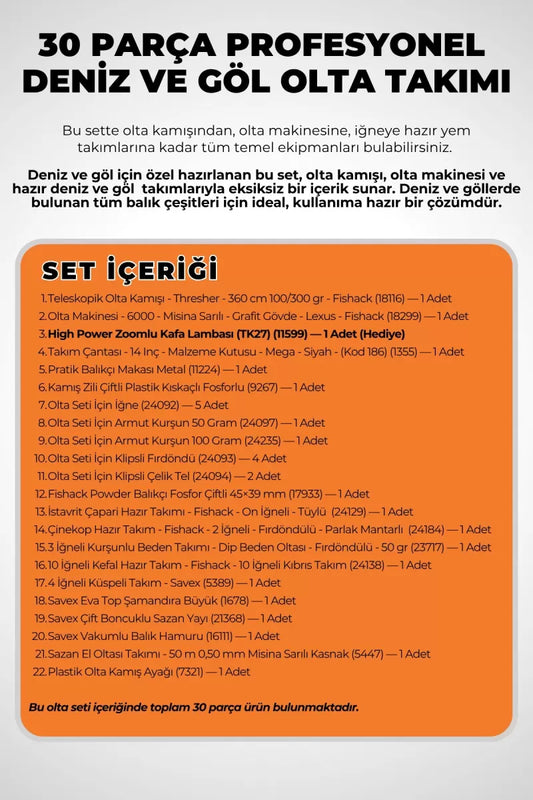 30 Parça Deniz ve Göl Profesyonel Olta Takımı Seti - 300cm Kamış 100-300GR / 40'lık Makine - Ful Set
