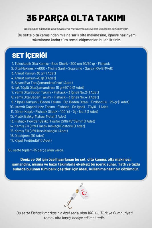 35 Parça Tam Takım Olta Seti - 300cm Kamış 40-80GR / 40'lık Makine (Gren) - Tüm Deniz ve Göller İçin