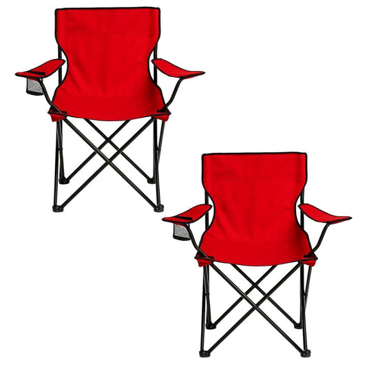 2 Adet Katlanır Kamp Sandalyesi - Piknik Plaj Sandalyesi - (DY.001) - Kırmızı - Taşıma Çantalı