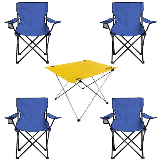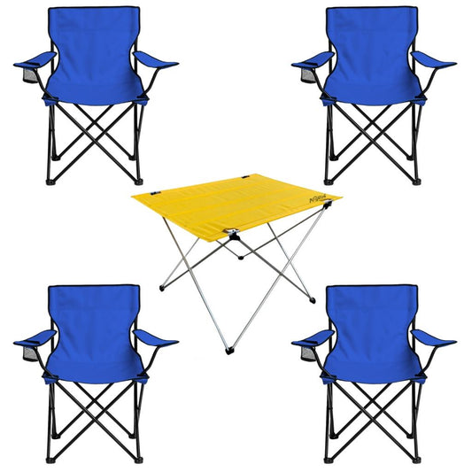 4 Adet Katlanır Kamp Sandalyesi ve Masa Seti - (DY.001) - Mavi/Sarı - Plaj Sandalyesi