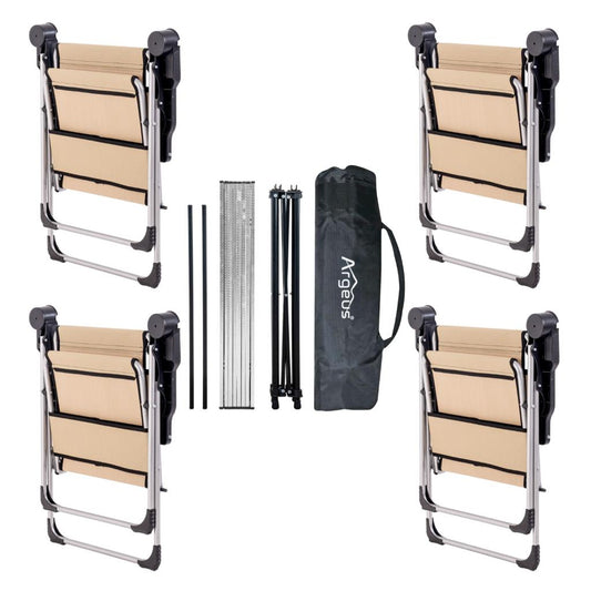 4 Adet Katlanır Kamp Sandalyesi ve Alüminyum Masa Seti - Rock Silver - Buğday - Taşıma Çantalı