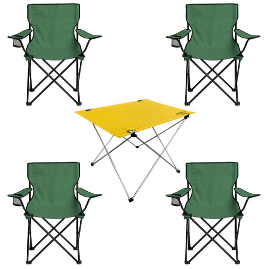 4 Adet Katlanır Kamp Sandalyesi ve Masa Seti - (DY.001) - Haki/Sarı - Plaj Sandalyesi
