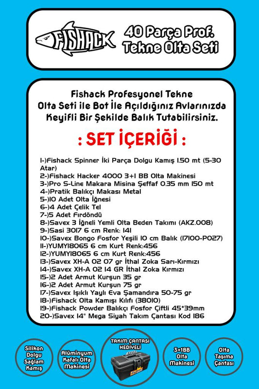 Fishack 40 Parça Profesyonel Tekne Olta Seti - 1.50MT/3+1BB