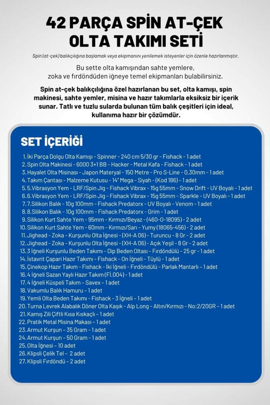 Spin At-Çek Deniz ve Göl Profesyonel Olta Seti Takımı - M - 1.50MT / 10-30GR - 42 Parça Elite