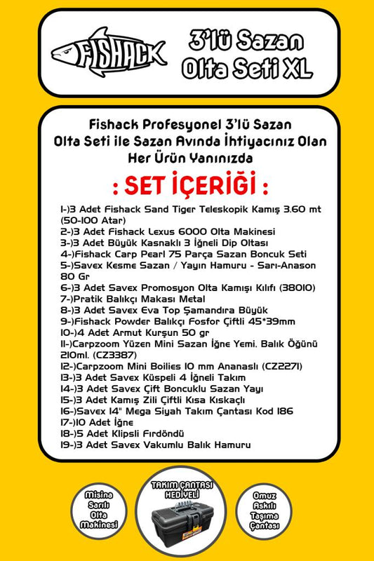 • Sazan (carp) setleri – 22, 23, 37 parçalı seçenekler