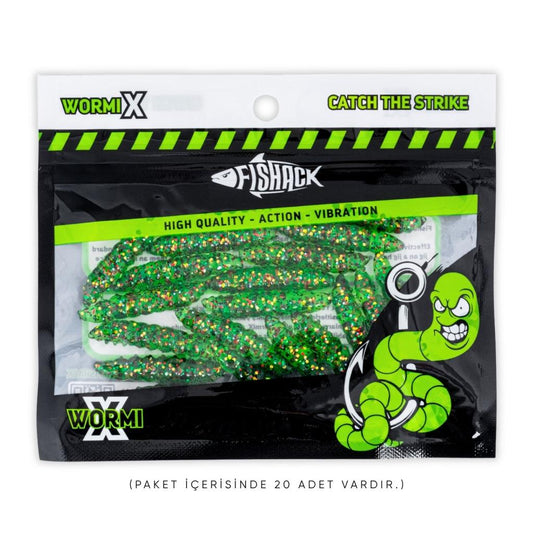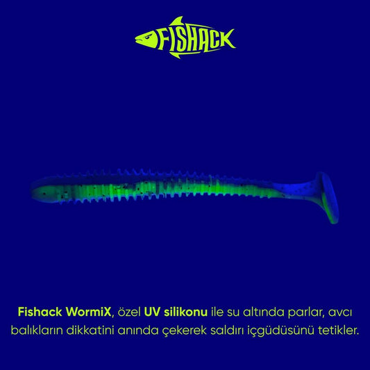 Silikon Kurt Yem - 1,1g 55mm - Fishack Wormix - 1 Adet - UV - Fluo Green - Karides Kokulu