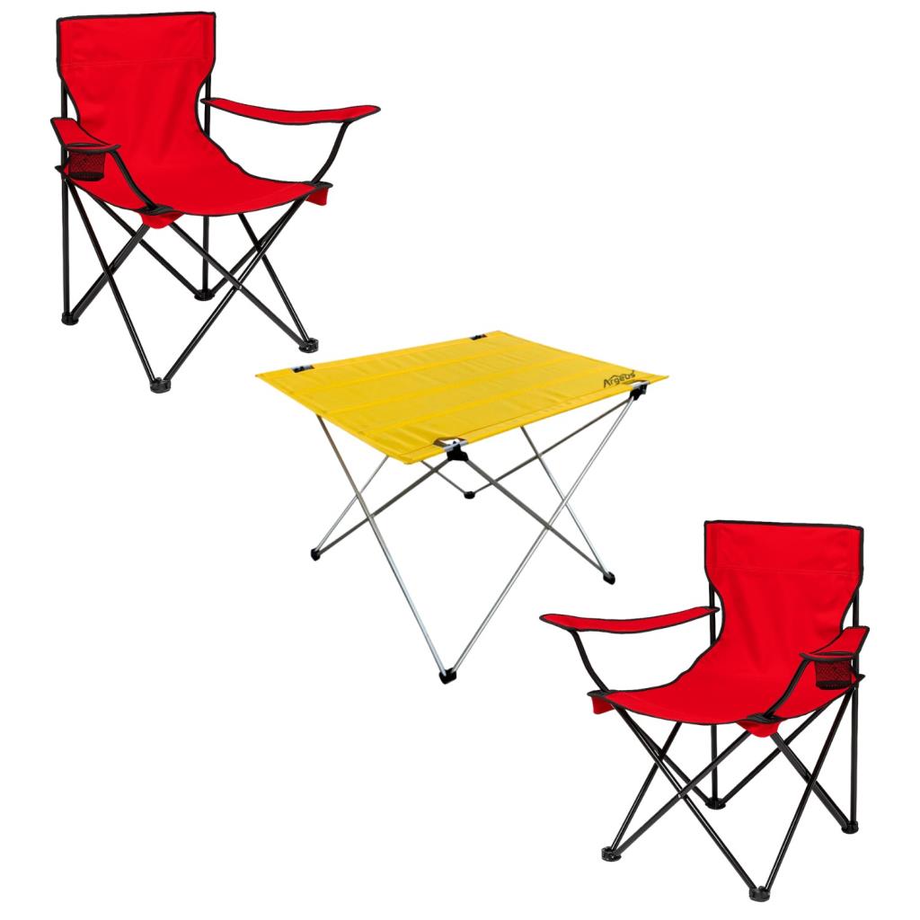 2 Adet Katlanır Kamp Sandalyesi ve Masa Seti - (DY.001) - Kırmızı/Sarı
