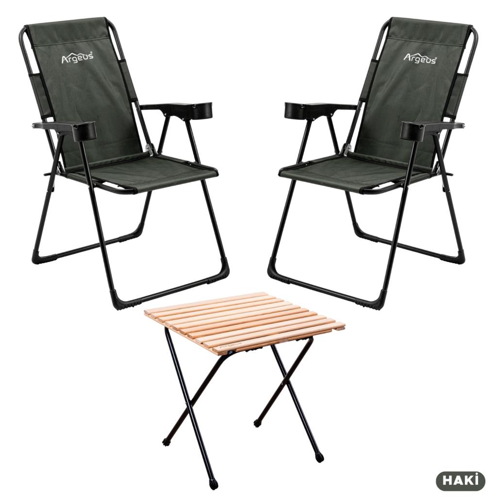 2 Adet Katlanır Kamp Sandalyesi ve Masa Seti - Rest - Haki
