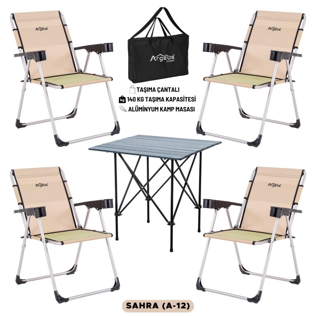4 Adet Katlanır Kamp Sandalyesi ve Alüminyum Masa Seti - Rock - Sahra