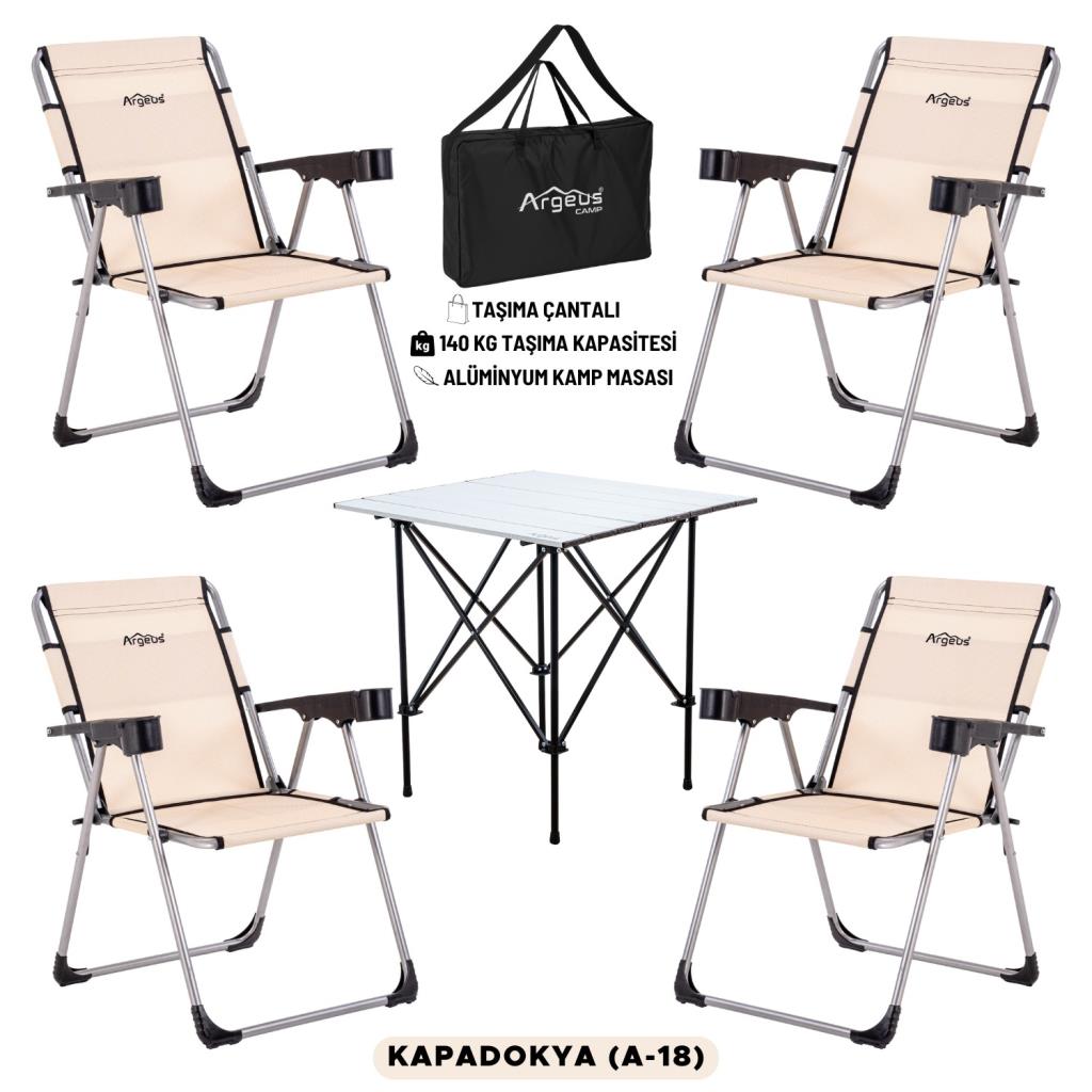 4 Adet Katlanır Kamp Sandalyesi ve Alüminyum Masa Seti - Rock Silver - Kapadokya - Taşıma Çantalı