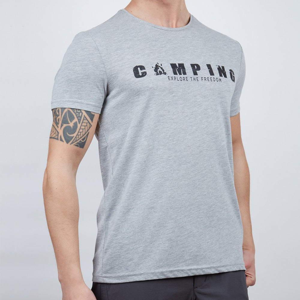 Erkek Tişört - Pamuklu Spor Tişört - Buteo - Gri Melanj (600610)