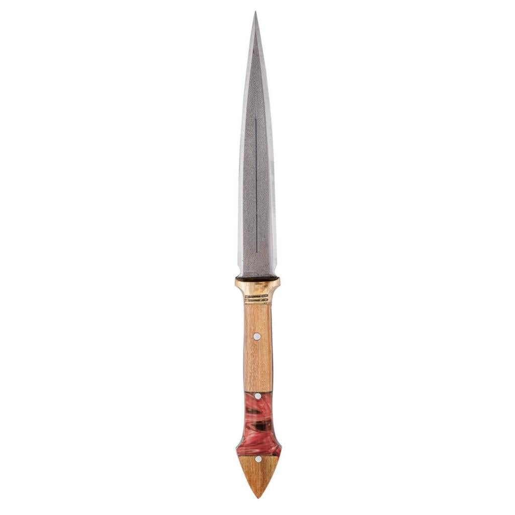 Çift Ağızlı Çerkez Bıçağı - Deri Kılıflı - Epoksi Sap - Büyük - Kırmızı