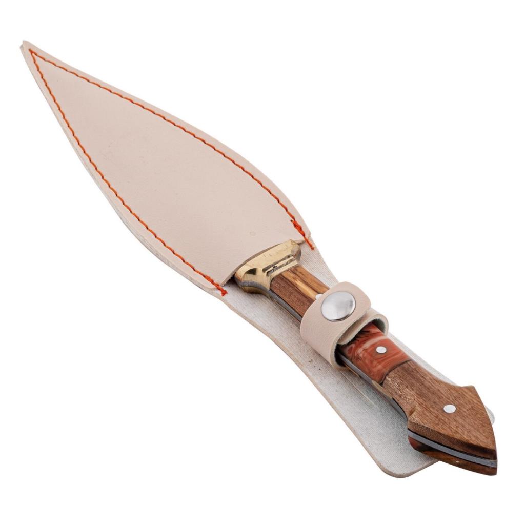 - Deri Kılıf: Yüksek kaliteli deri malzemeden üretilen kılıf, hem taşıma kolaylığı sağlar hem de bıçağı dış etkenlerden korur.