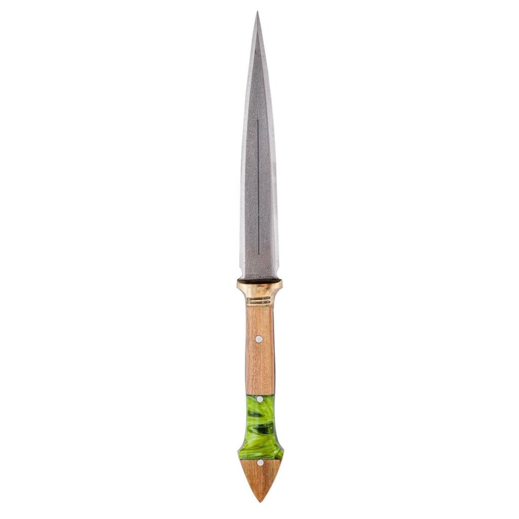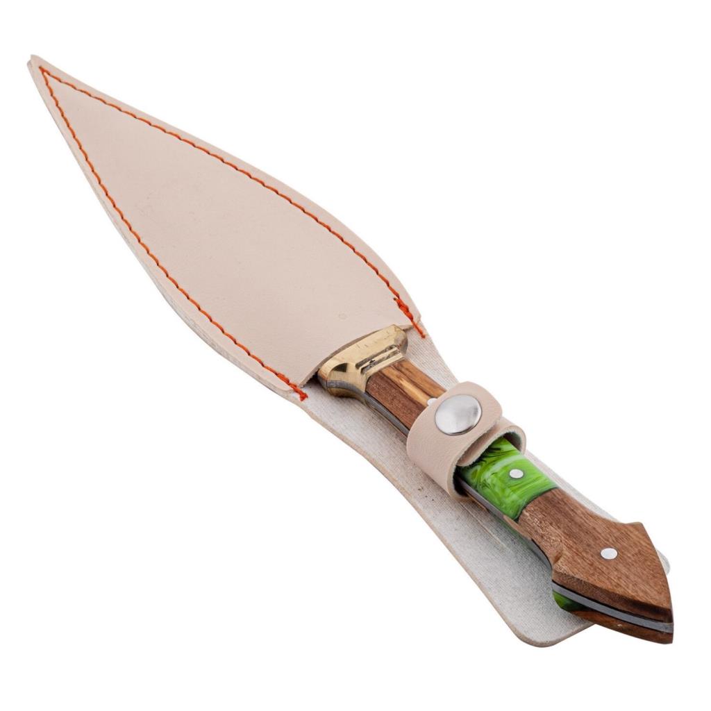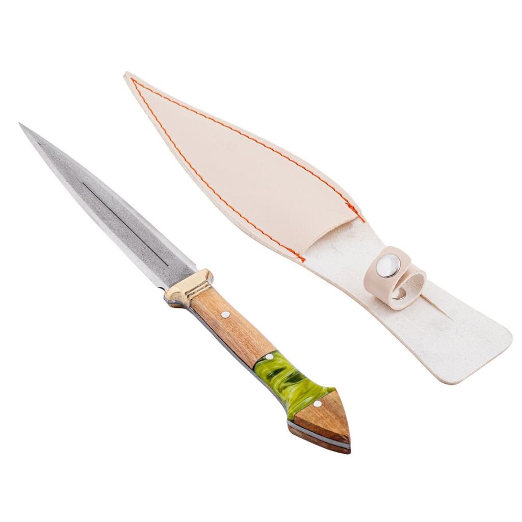 Çift Ağızlı Çerkez Bıçağı - Deri Kılıflı - Epoksi Sap - Büyük - Yeşil