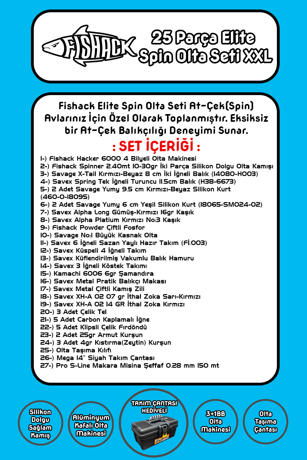 Savex 14" Mega Siyah Takım Çantası Hediyelidir. Bu sayede olta setinizi güvenli bir şekilde taşıyabilirsiniz.