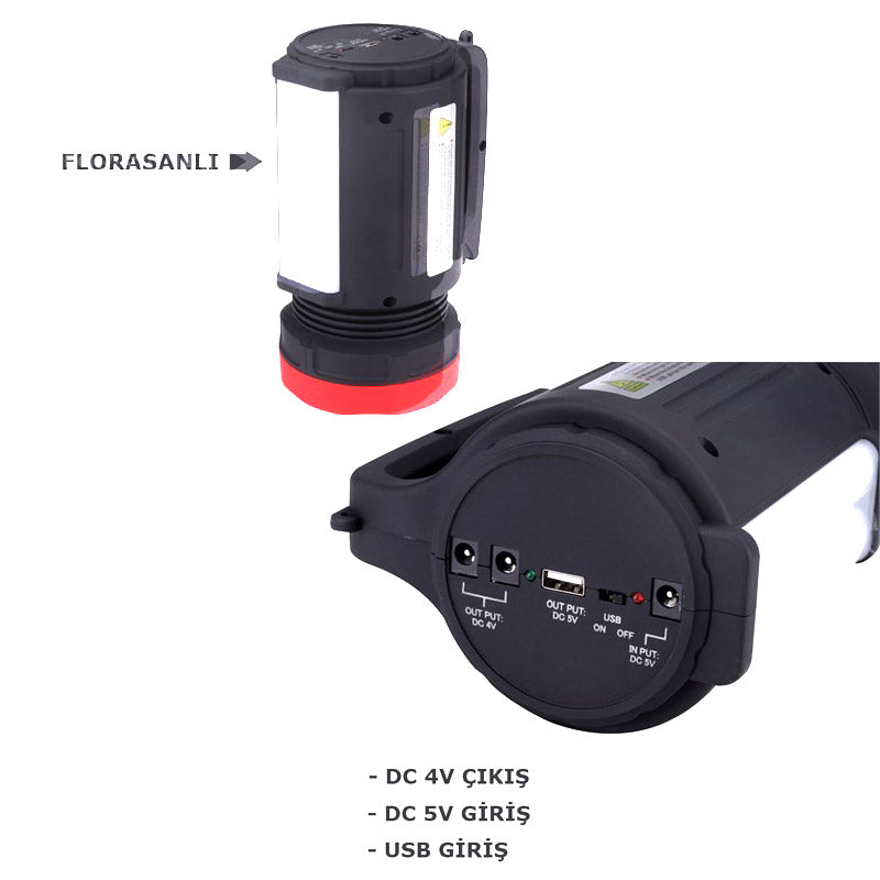 Işık Özelliği: 2 Florasan LED + 1 Ultra Güçlü 5W Parlak LED