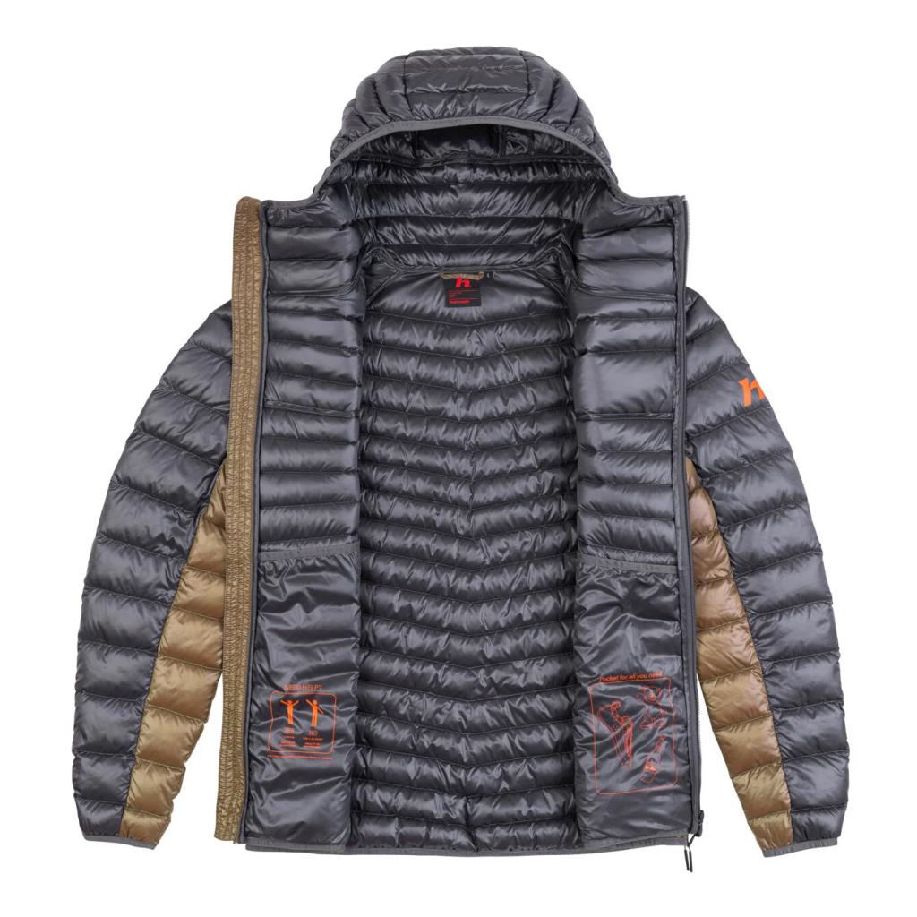 Su geçirmez kaplamalı, yüksek yoğunluklu Airlite DMF kumaştan yapılmıştır ve Bluesign sertifikalı ördek tüyü ile doldurulmuştur .