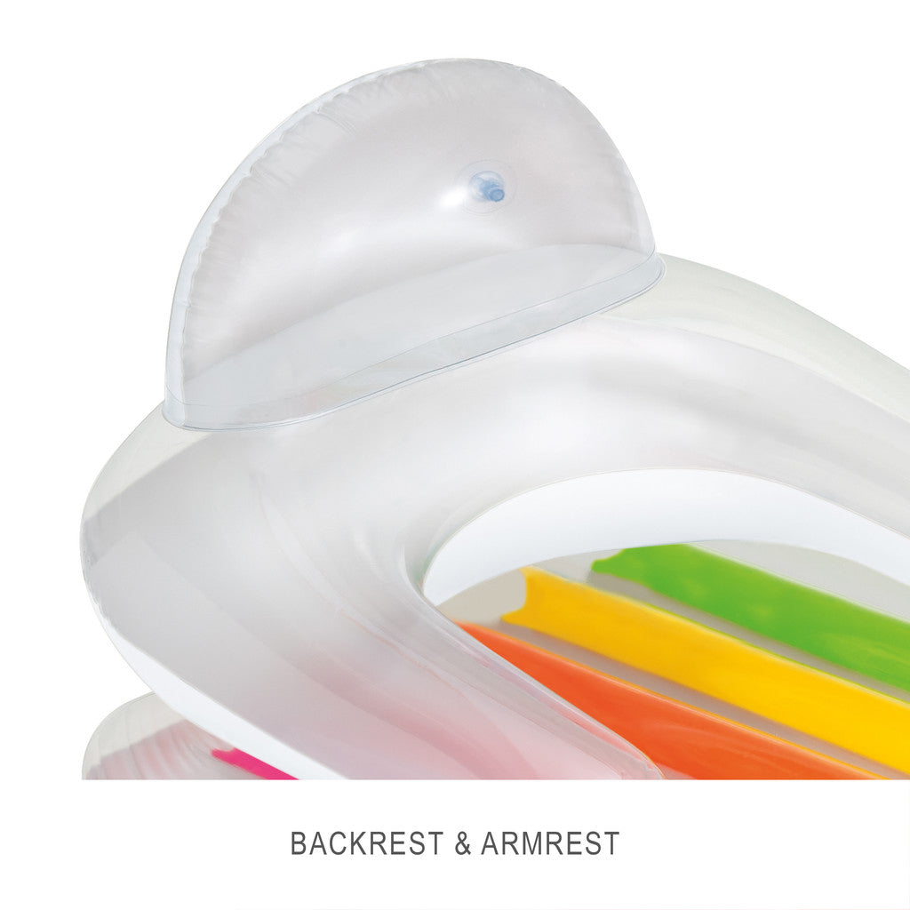 Klasik Intex® King Kool™ havuz ve deniz yatağı, sadece yaşla daha da iyi hale geldi. Üstün rahatlık sunması için rahat bir sırtlık ve kol dayama yerleri bulunmaktadır ve güvenlik için iki hava odası vardır.