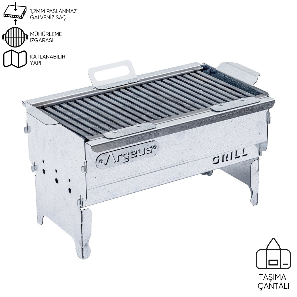 Katlanabilir Ayaklı Mangal - Paslanmaz - Argeus - Taşıma Çantalı - Orta