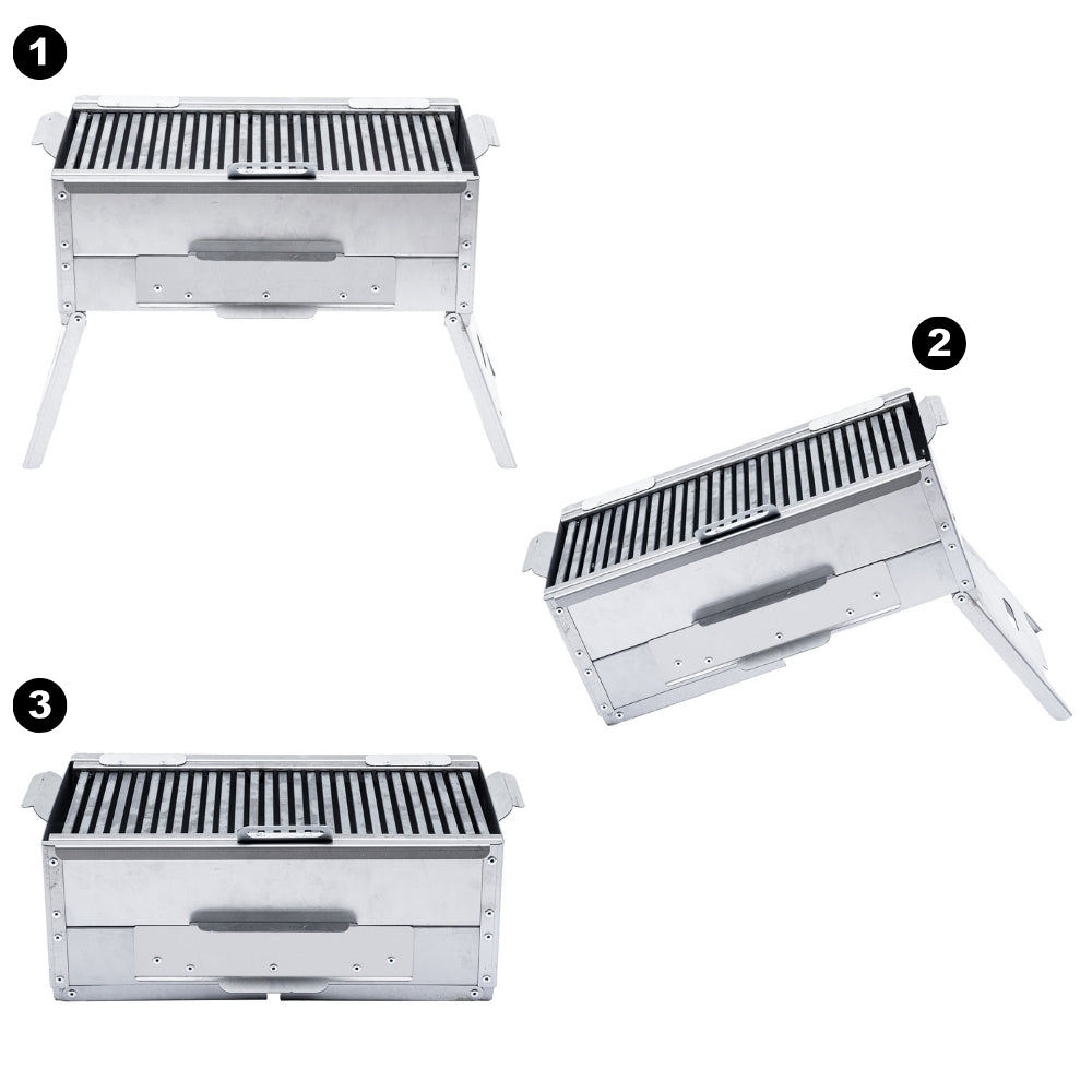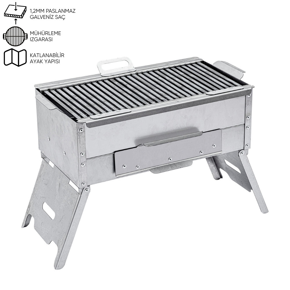 Katlanır Ayaklı Mangal - Argeus - Paslanmaz - Mühürleme Izgaralı - Kül Hazneli