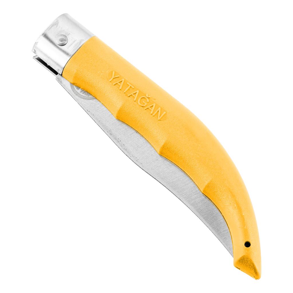Yatağan Katlanır Cep Çakısı, el yapımı ve yüksek kaliteli işçilikle üretilmiş, dayanıklı ve kullanışlı bir araçtır. Sarı renkli sapı ve şık tasarımı ile hem estetik hem de fonksiyonel bir çözümdür. No:2 modeli, pratik katlanabilir yapısı sayesinde kolayca taşınabilir ve her türlü günlük ihtiyacınızda size yardımcı olur.