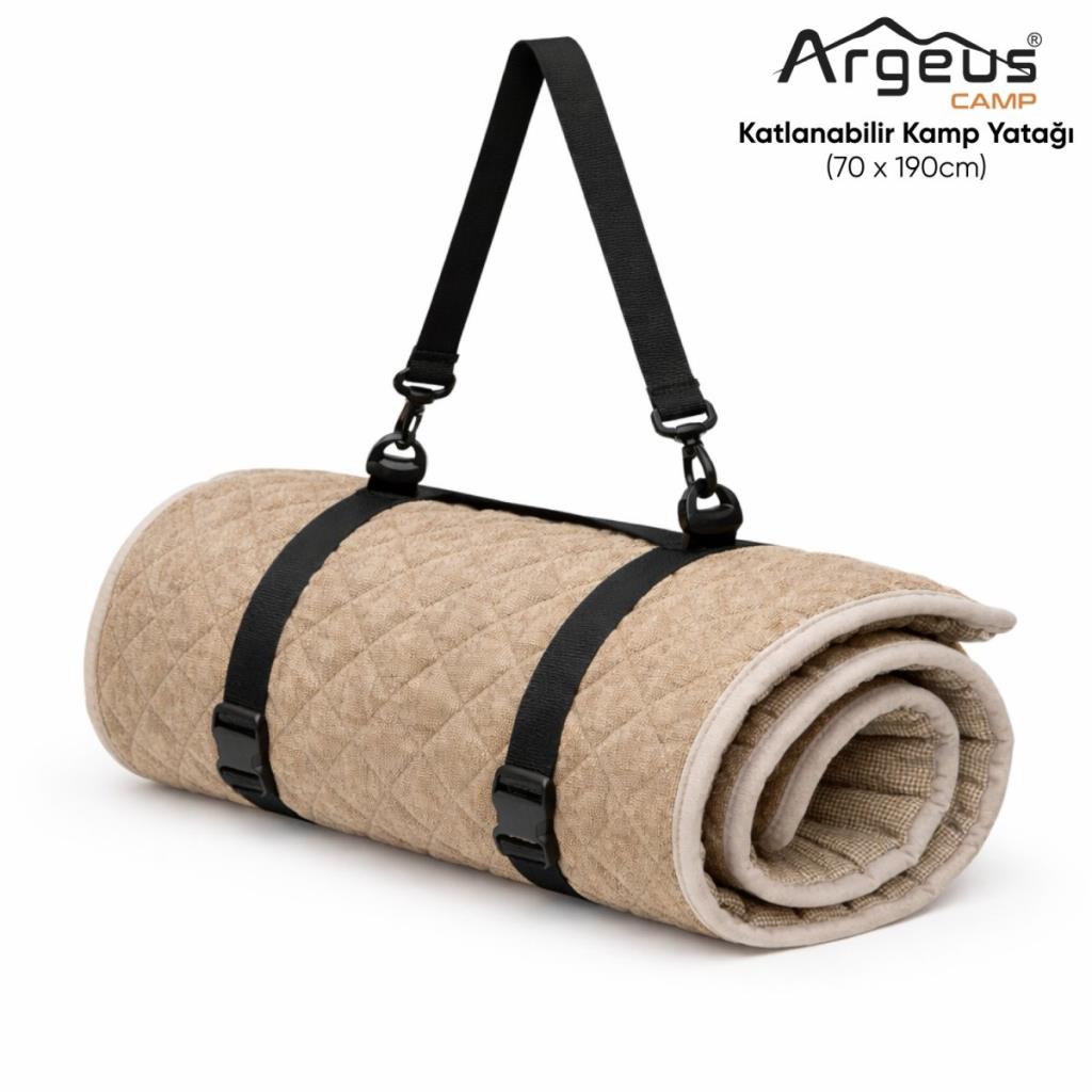 Katlanır Kamp Yatağı - Yer Yatağı - Taşınabilir - Argeus - Bej - 70x190cm - Omuz Askılı