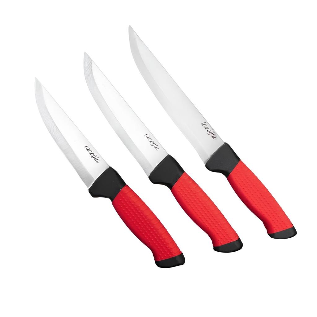 Mutfak Bıçağı - Lazoğlu - 3'lü Set - El Yapımı - Kesme - Doğrama - Silikon Saplı