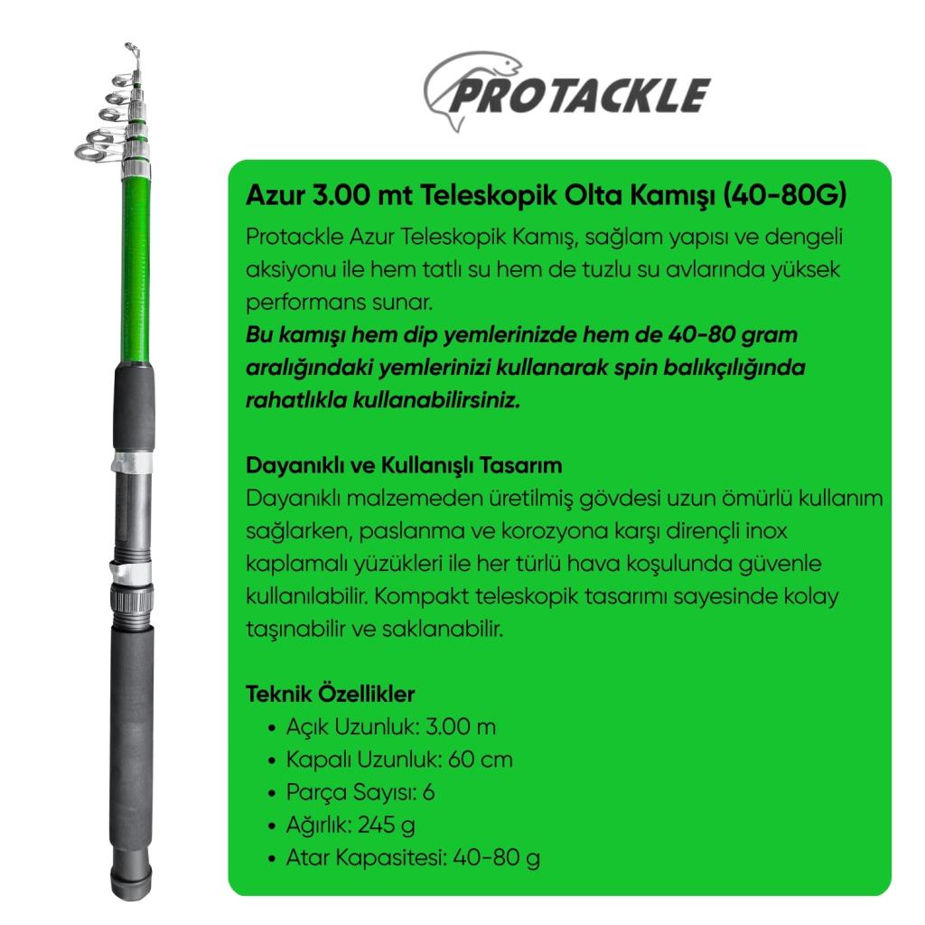 - Kamış: Protackle Azur Teleskopik Olta Kamışı – 3.00 m (40-80 g)