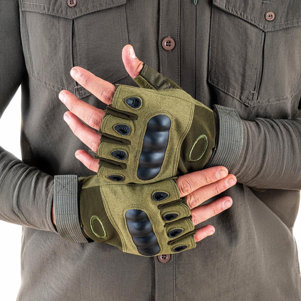 Parmaksız Kemik Taktikal Eldiven - Haki - 1108