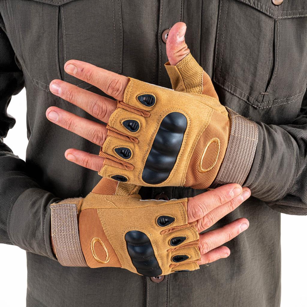 Parmaksız Kemik Taktikal Eldiven - Kum - 1108