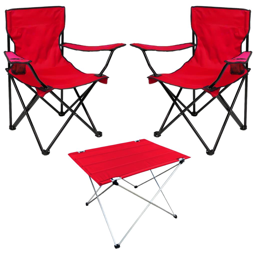 Savex 2'li Bardaklı Katlanabilir Sandalye ve Masa Seti - Kırmızı (DY.001)