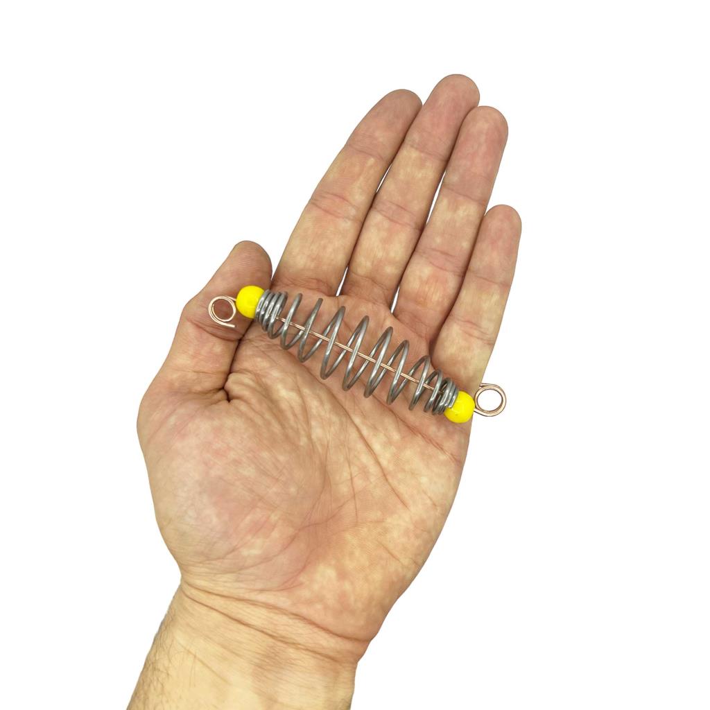 Üstünde ve altında olmak üzere üzerinde iki adet sarı renk boncuk vardır.