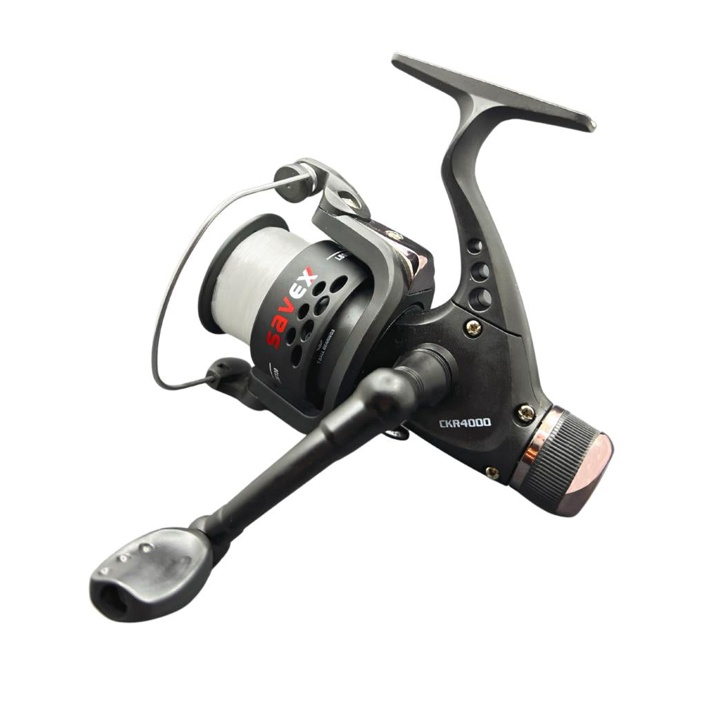 Savex CKR-4000 Olta Makinesi, hafif yapısı ve sağlam iç donanımıyla balıkçılıkta güvenilir performans sunar. Üzerinde hazır misina sarılı olması sayesinde kullanıma pratik bir başlangıç imkanı sağlar. Ergonomik kol topuzu ve arkadan kalama sistemi ile kolay kullanım sağlar.