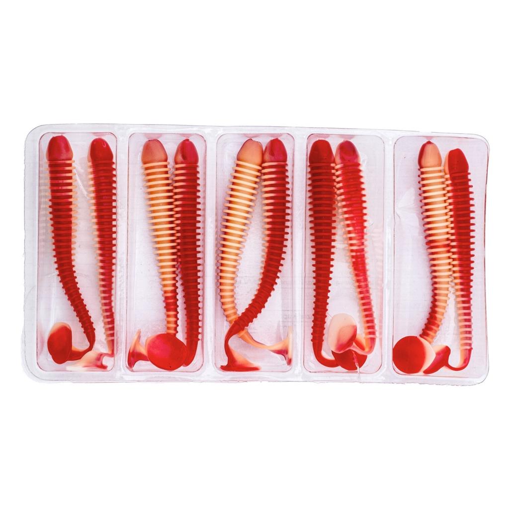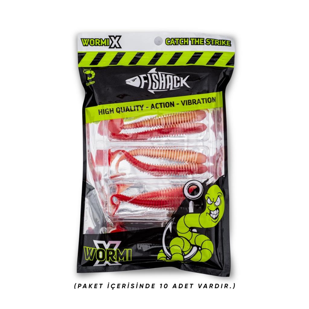 Silikon Kurt Yem - 4,2g 105mm - Turna/Levrek Silikonu - 1 Adet - Kırmızı/Beyaz - Karides Kokulu