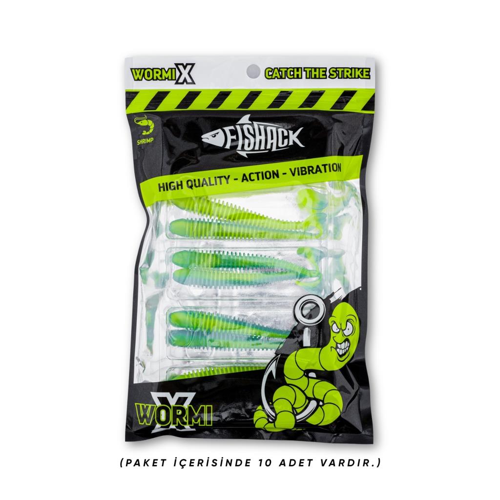 - Fishack silikon yemlerinde kullanılan özel UV aktif hammadde, düşük ışıkta dahi maksimum görünürlük sağlar. UV ışığını algılayabilen avcı balıkların dikkatini çeker ve saldırı refleksini tetikler. Böylece daha etkili ve verimli bir av deneyimi sunar.