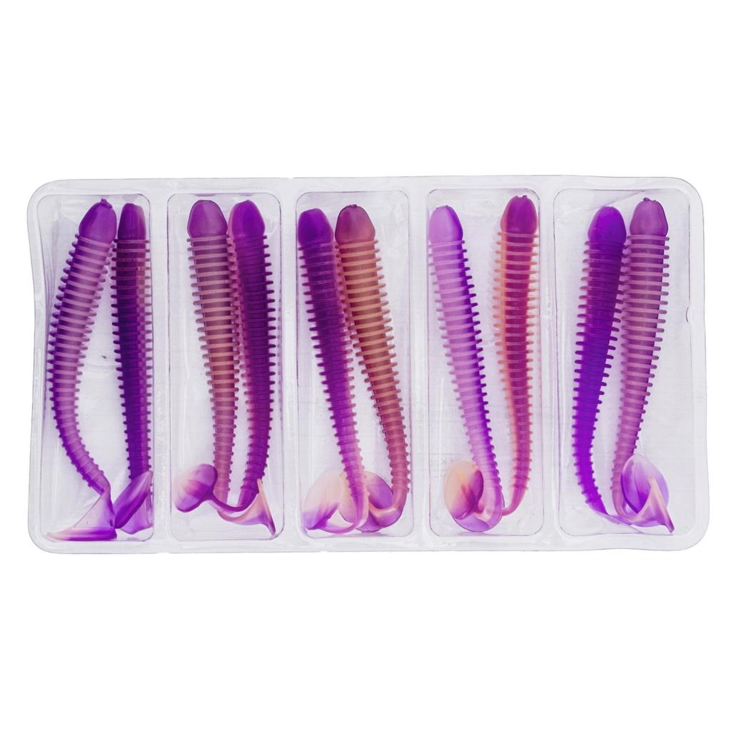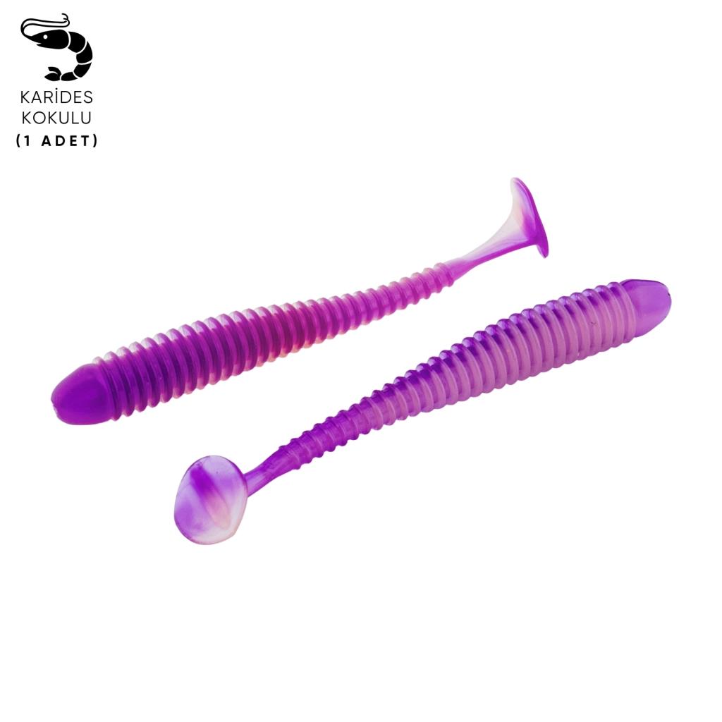 Silikon Kurt Yem - 4,2g 105mm - Turna/Levrek Silikonu - 1 Adet - Mor/Beyaz - Karides Kokulu