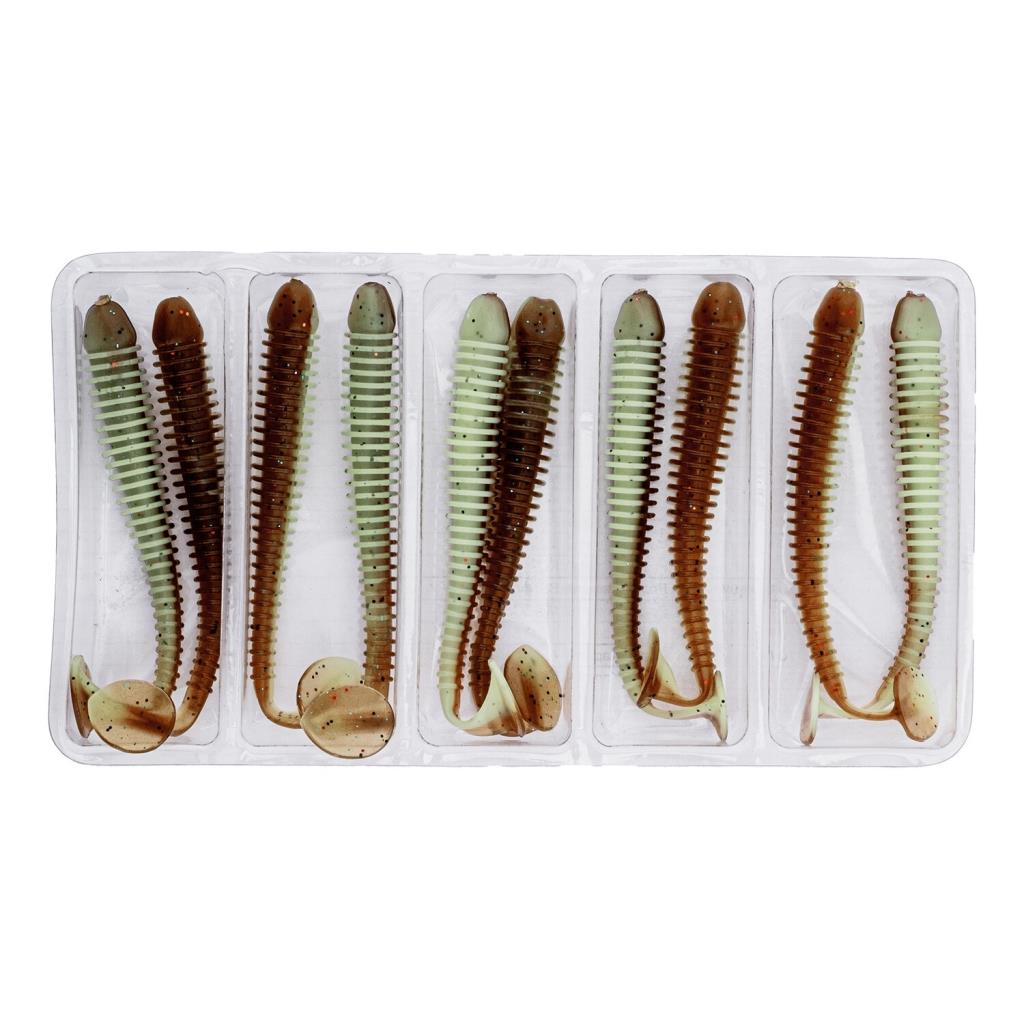 Silikon Kurt Yem - 4,2g 105mm - Turna/Levrek Silikonu - 1 Adet - Yeşil/Kahve - Karides Kokulu