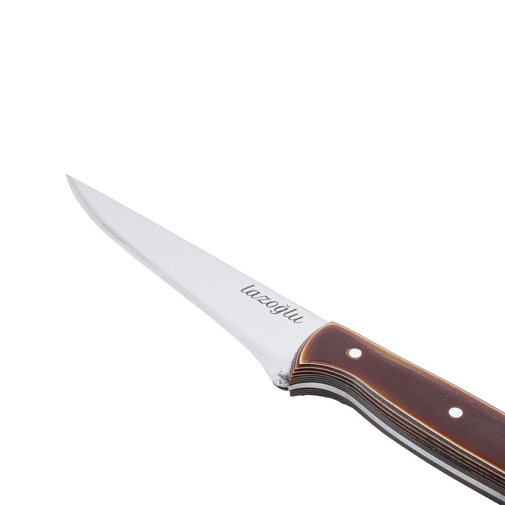 El Yapımı: Lazoğlu'nun el işçiliğiyle üretilen bu bıçak, her aşamada titizlikle kontrol edilmiştir ve yüksek kaliteli işçilikle son haline getirilmiştir.