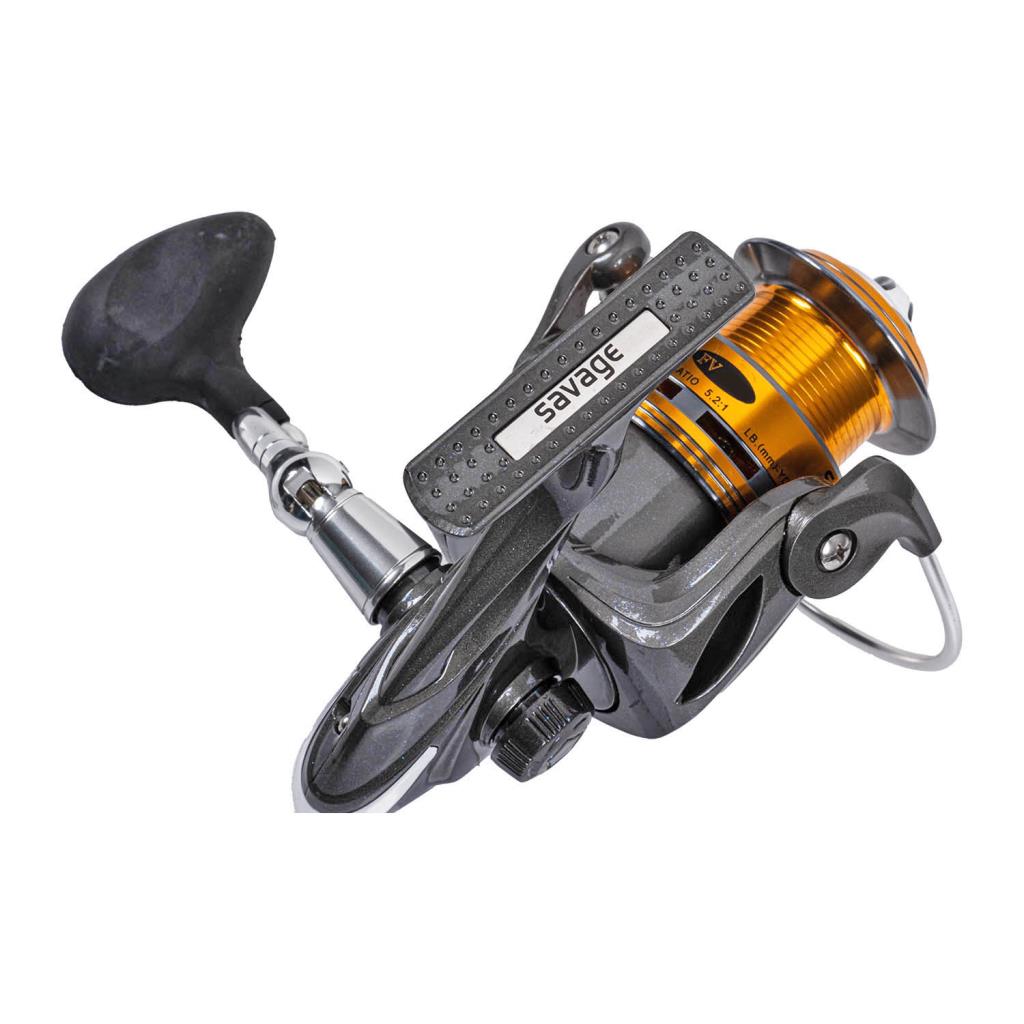 Savage Favor FV-3000, kurşun rengi ve metalik detaylarla şık bir görünüme sahip olup, güçlü iç donanımı ve dayanıklı yapısıyla spin avcılıkta uzun ömürlü performans sunar. Altın ve metalik kaplamalı makarası ile estetik ve işlevselliği bir arada sunar.