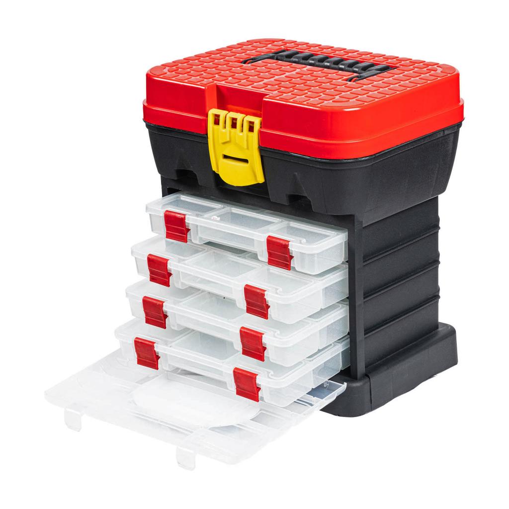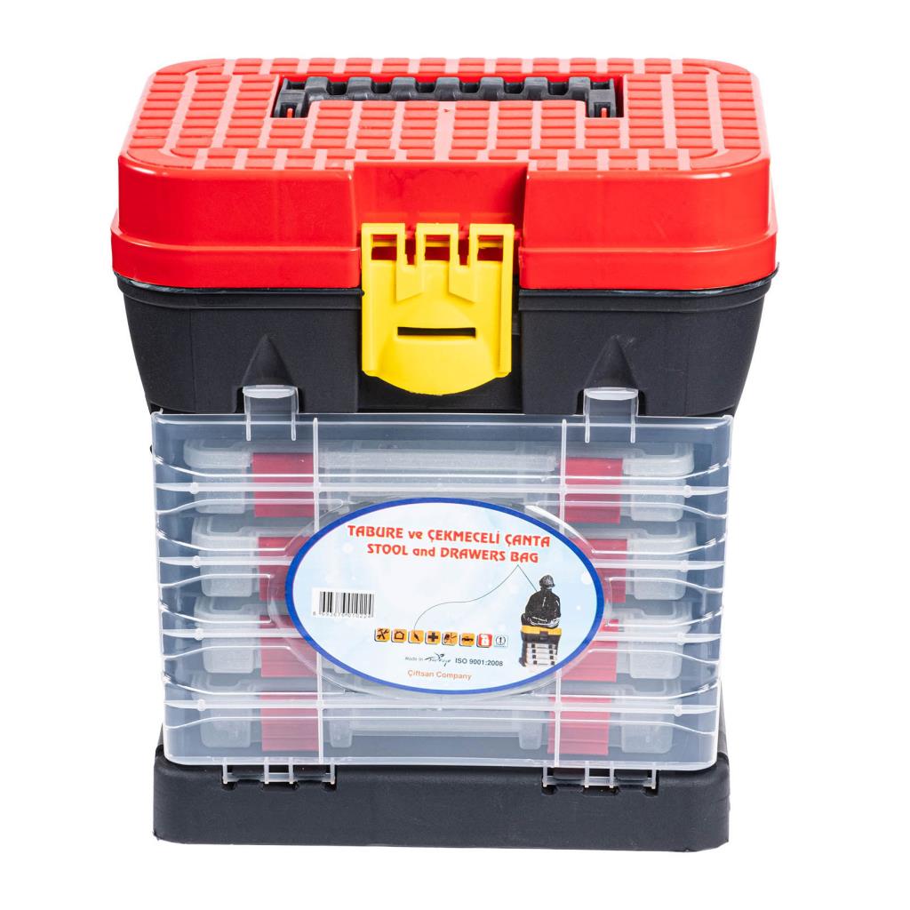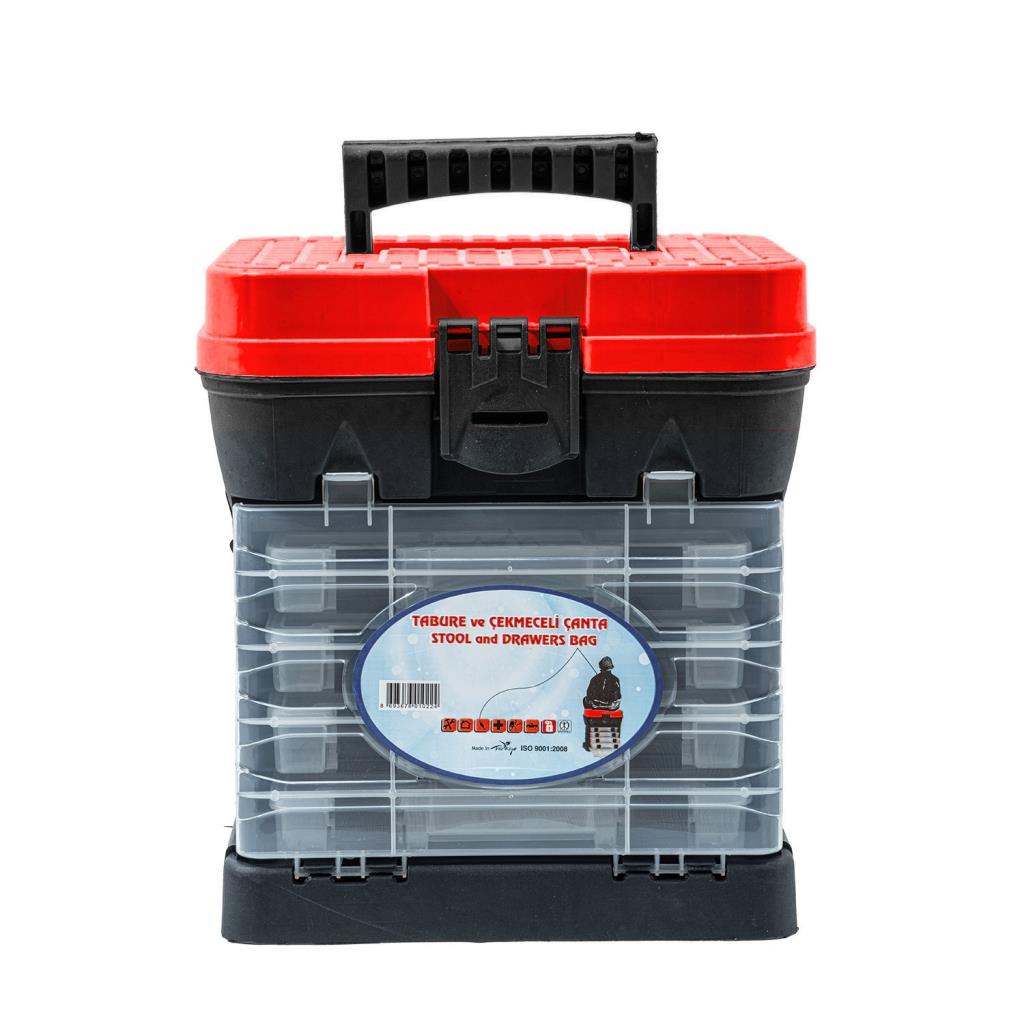 Tabureli Balıkçı Takım Çantası - 4 Çekmeceli - Kırmızı