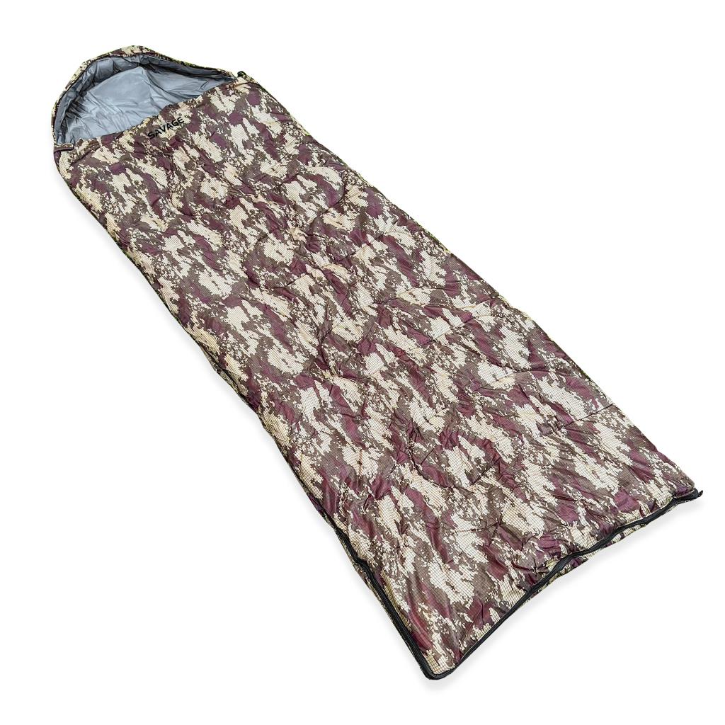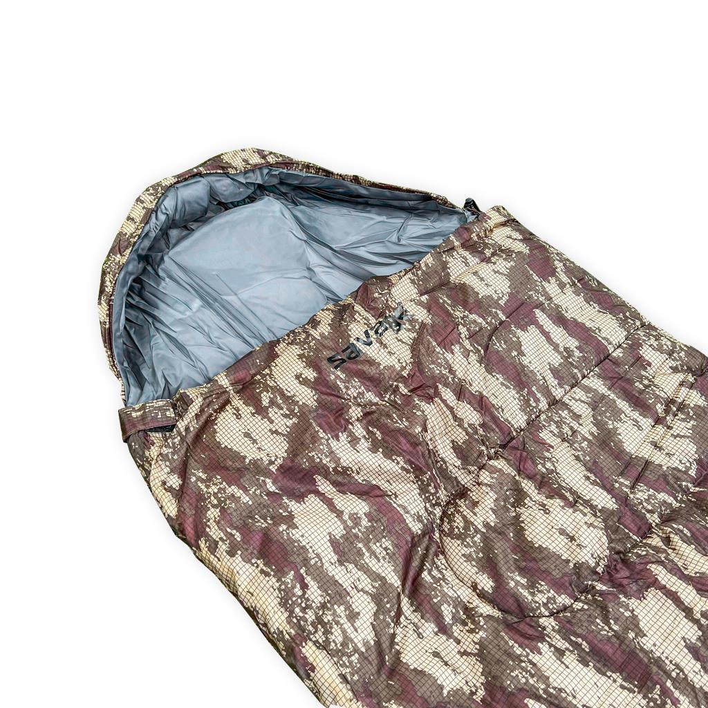 SAVAGE Army -20°C uyku tulumu, birleştirilebilir yapısı, güçlü ısı yalıtımı ve dayanıklı kamuflaj tasarımıyla soğuk hava koşullarında güvenli ve konforlu bir uyku deneyimi sunar.